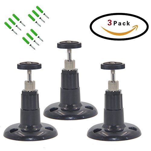 -. Feature : ★ Indoor/Outdoor Wall or Ceiling Mount for Arlo Smart Home Security Camera System & Other Camera Systems CCTV, DVR cameras installation, and so on.(Please note: Security Camera NOT INCLUDED, only Mount for sale) / ★Using environment: Indoor and Outdoor (Wall,Tree,Door,Corner,Baby bed and so on) / ★ Waterproof Plastic Material for Outdoor.Black Color / ★Easily adjustable with 360 degree swivel bearing & 90 degree tilt,support up to 5lbs / ★ Value Package: 3x Camera Wall Mount ,9x Screws, 9x Wall Plugs