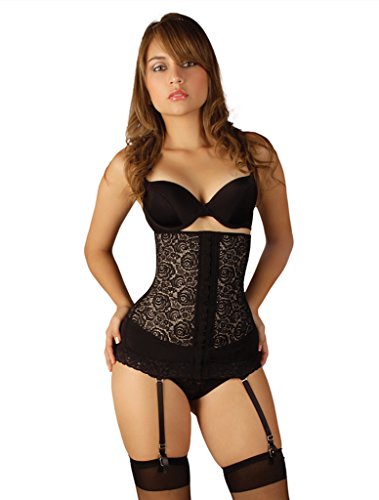 Binding : Apparel Product Description This body shaping corset with sexy lace design is meant show off your curves. It provides strong compression that flattens the abdomen and slims the waist. The front hook and eye closure slims down abdomen area another extra 2-3 inches. The corset incorporates garters to be worn with any pair of stockings. 0