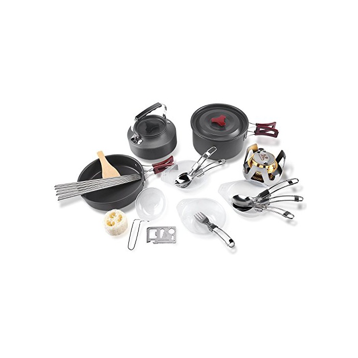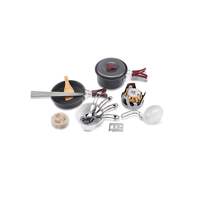 Hotwolf 캠프 용품 세트 알루미늄 쿠커 1-2명 용,BBQ 식기 캠프 용품 등산용 아웃도어 행락 대편리 스테인레스 젓가락 스푼 포크 접는 아웃도어과 포터블 캠핑 냄비