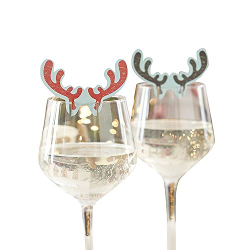 Ginger Ray Vintage Noel Fun Christmas Card Glass Decorations/Antlers, Mixed