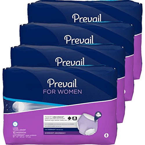 Prevail Overnight Absorbency Incontinence Underwear for Women, Large, 16 Count (Pack of 4)