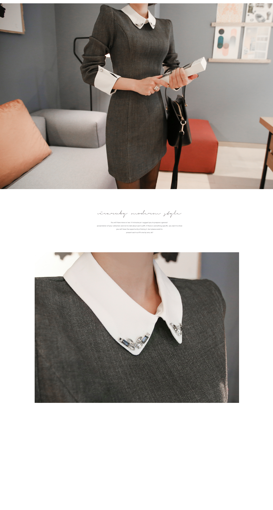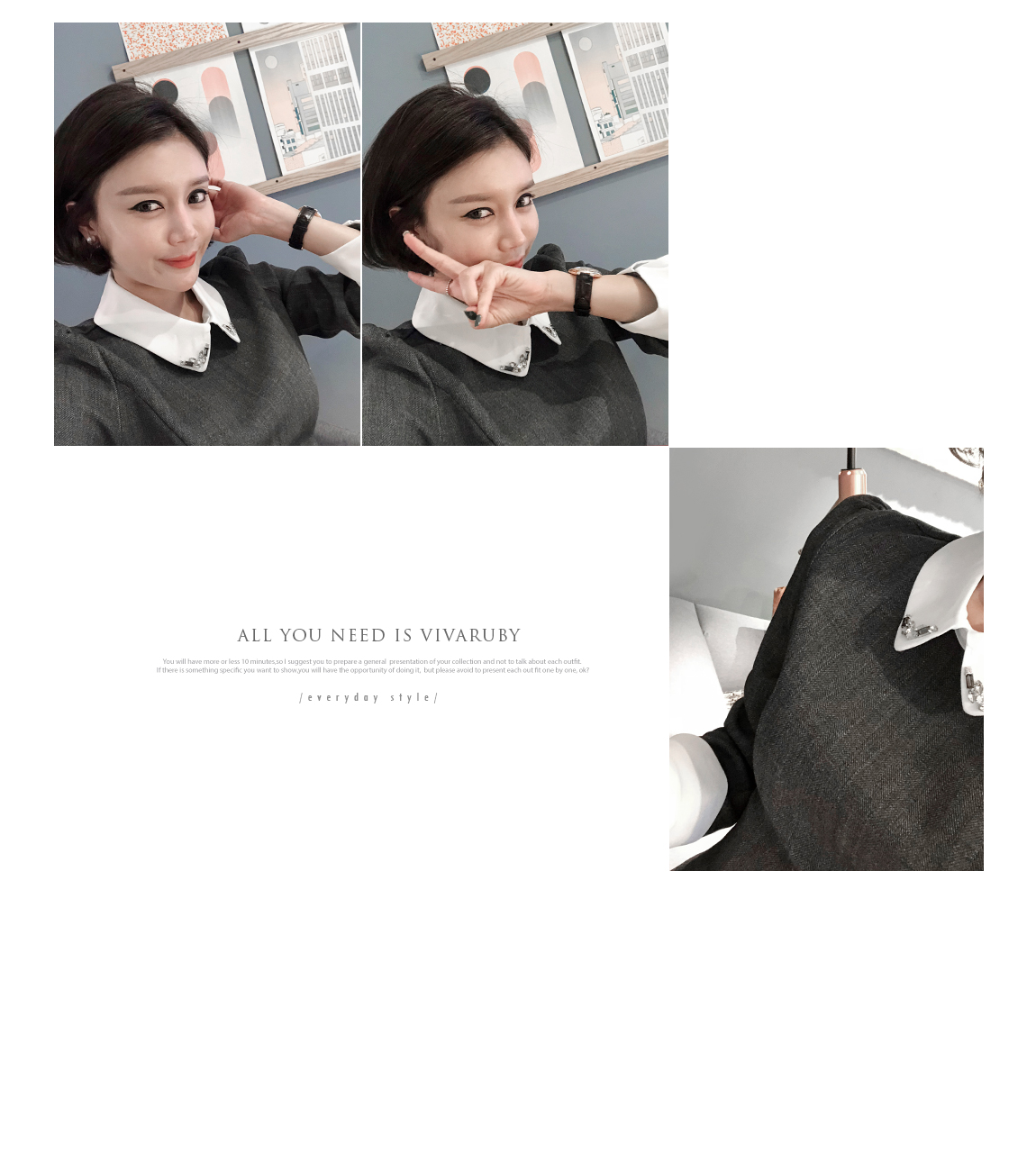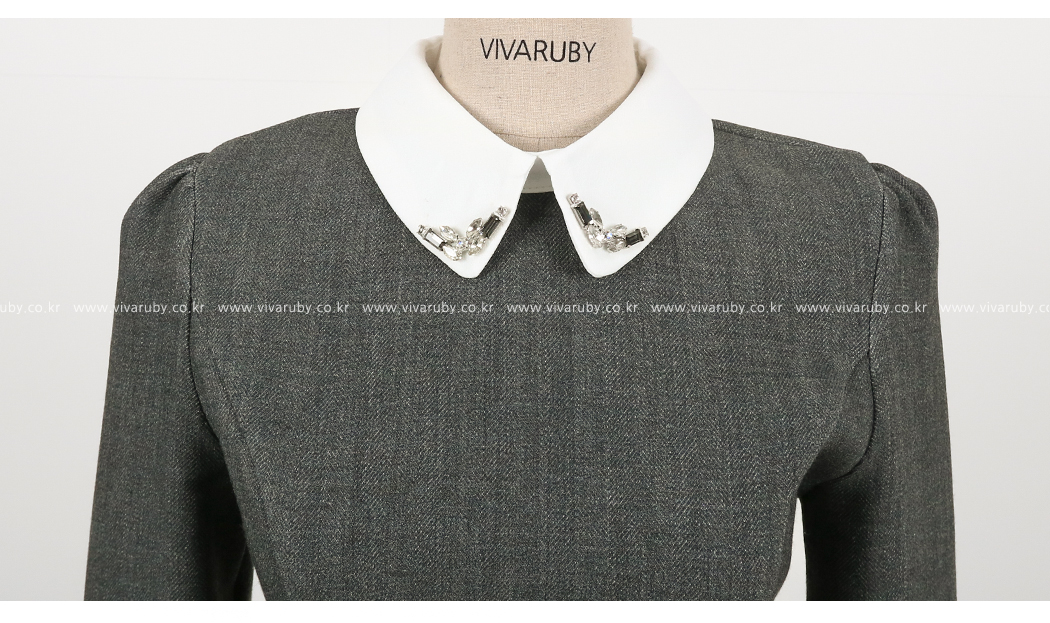 카라의 배색과 큐빅으로 여성스러운 포인트를 주었어요