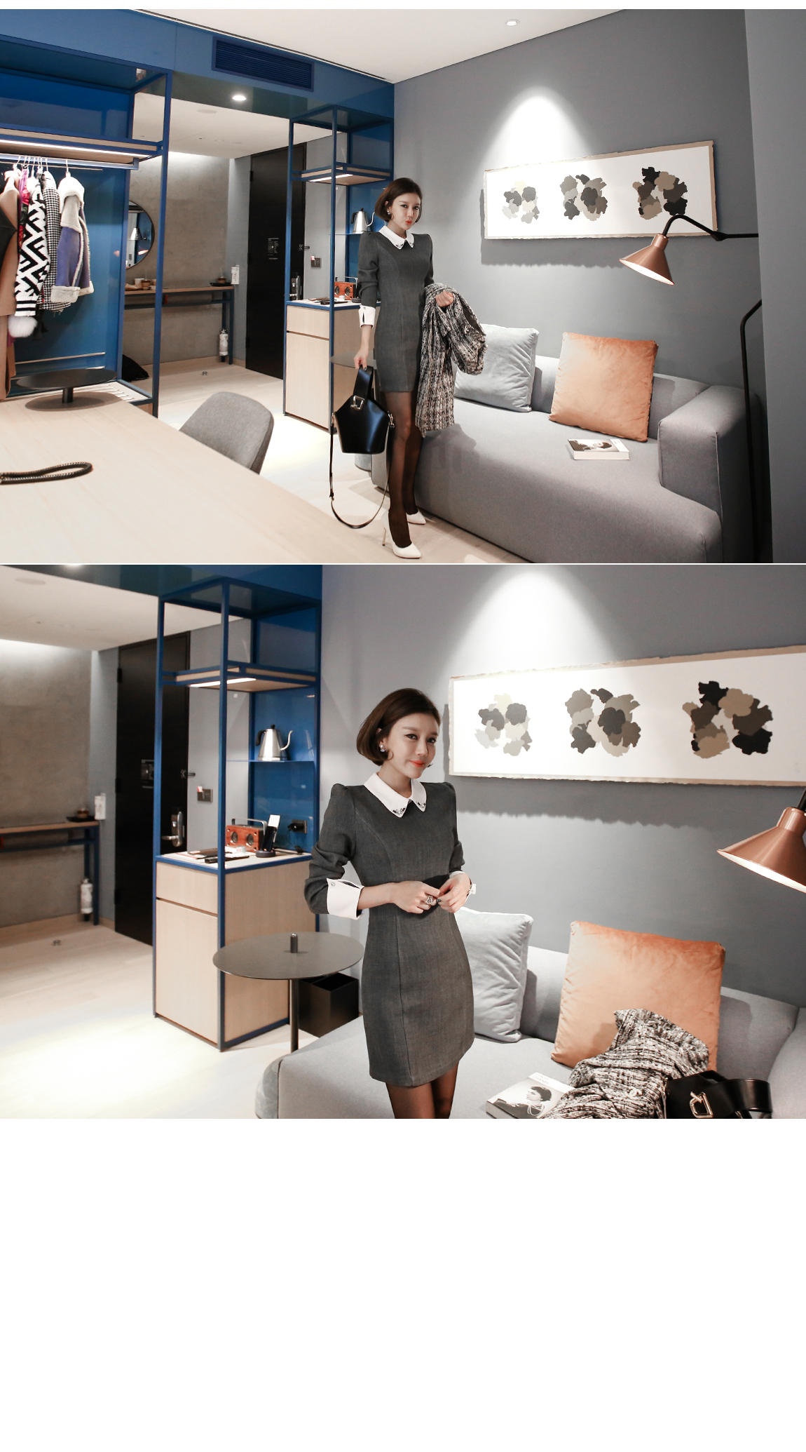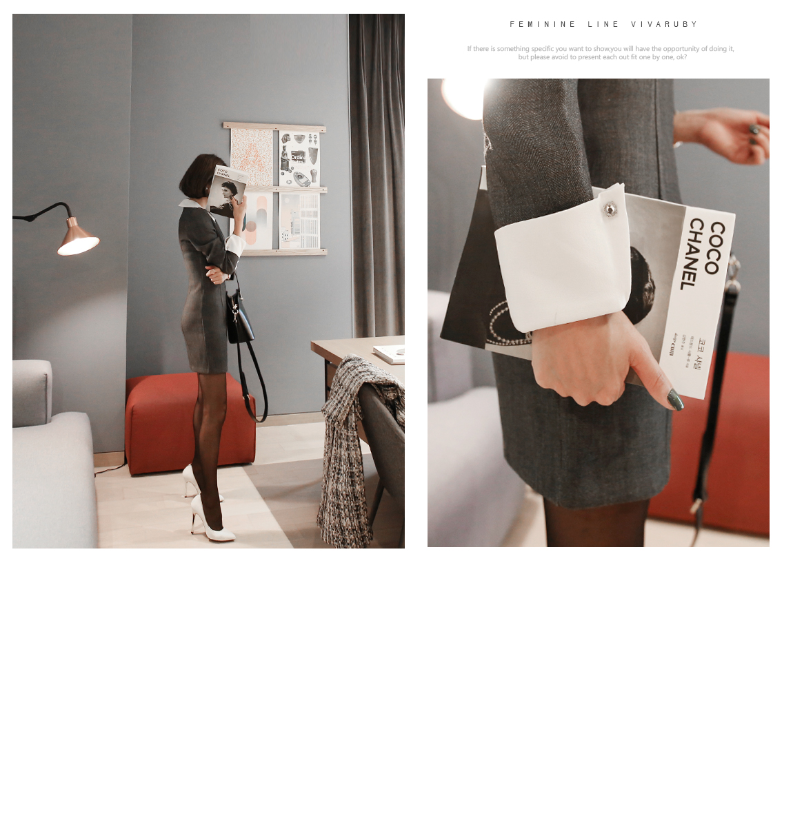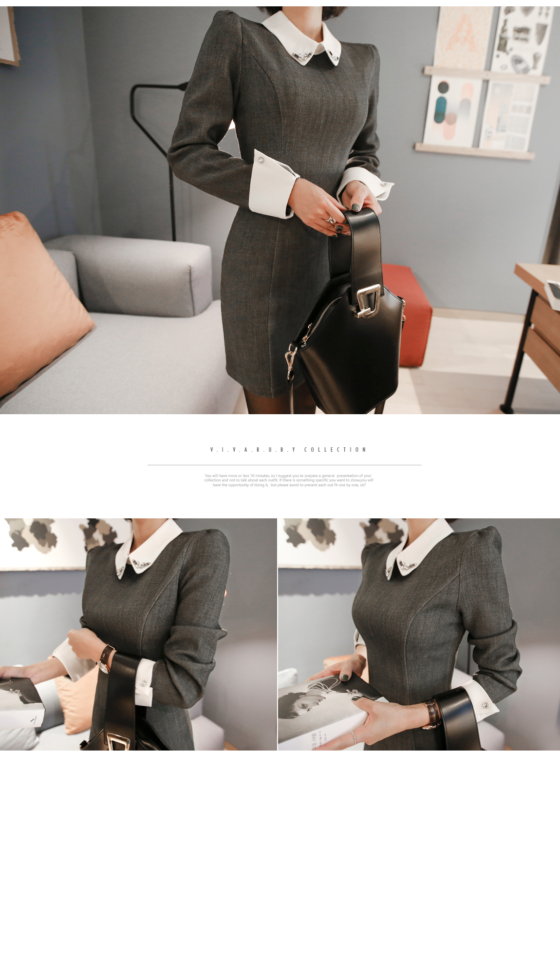 카라의 배색과 큐빅으로 여성스러운 포인트를 주었어요