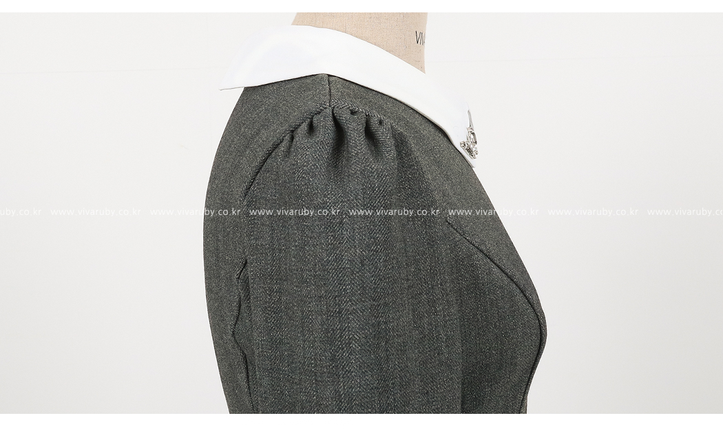 어깨에 셔링으로 볼륨감있는 실루엣이 연출되어요