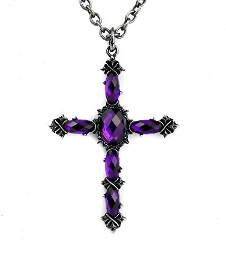 -. Title : Purple Stone Vampire Cross Necklace Dark Elegant Pendant