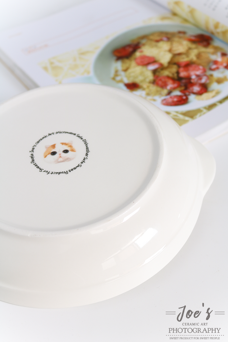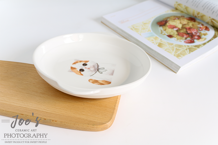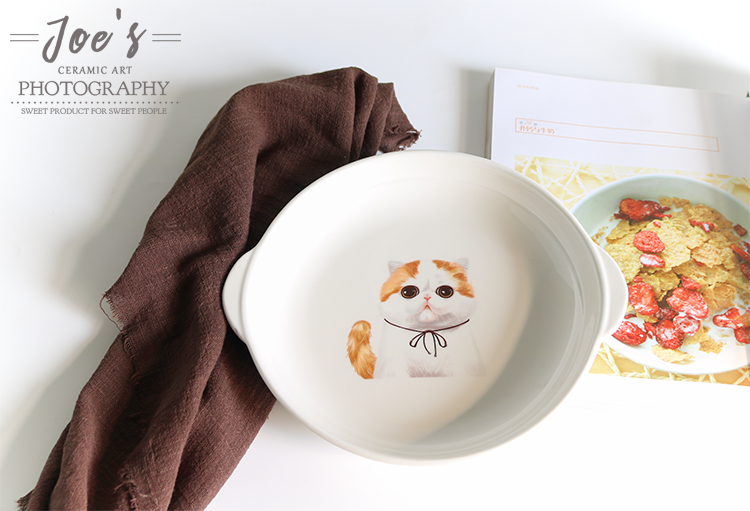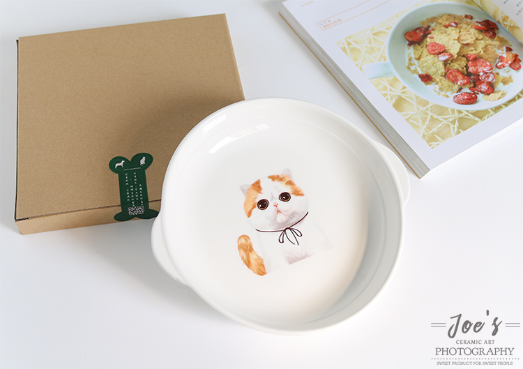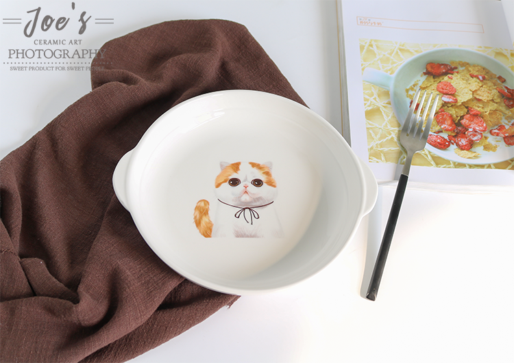 新品宠物陶瓷餐具8寸双耳盘家用菜盘烘焙用陶瓷盘焗饭盘加菲猫盘