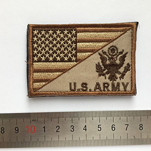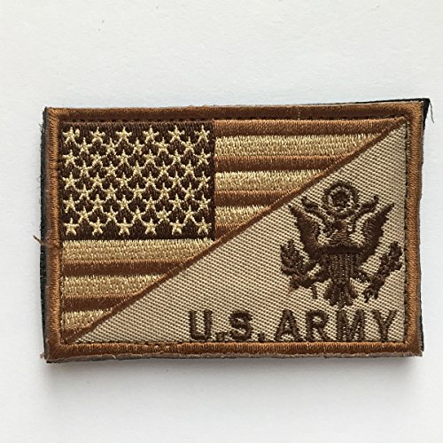 SpaceAuto USA American Flag w/ United States Armed Forces U.S. Army Military Tactical Morale Badge Decorative Emblem Hook & Loop Patches 3" x 1.97" - Brown