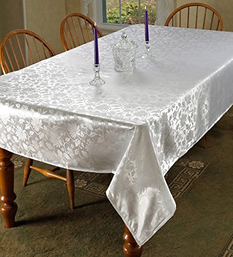 -. Feature : Drees up dinner. or any meal. with this appealing tablecloth. / Kitchen accessory combains the soft, visual appeal of cotton with the durability of polyester. / Available in Burgundy and Gold and Beige in White color options. / Available in the following sizes 52" by 70" , 70" Round , 60" by 84" , 60" by 102" . / 100% Polyster. Machine Washable. Imported.