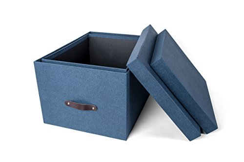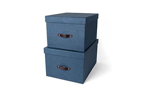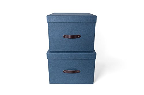 Bigso Tore Canvas Paper Laminate Storage Boxes with Leather Handle, Navy, Set of 2