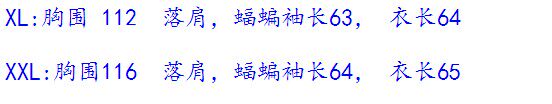 M:胸围104u0026nbsp;落肩,蝠蝙袖长60,衣长61