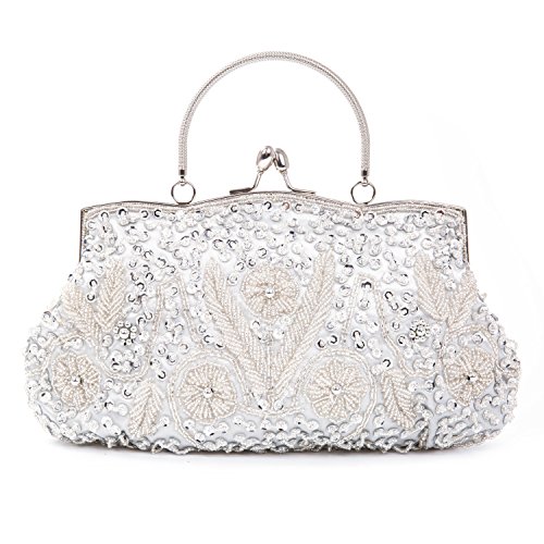 -. Feature : Material:This beautiful handbag is made from soft satin,beaded and sequins with kiss snap closure / Clutches Dimensions:11.4"(L) * 1.2"(W) * 10.2"(H) / 3 in 1 bag(evening bag,handbag,cross-body bag,shoulder bag),it's a good holiday gift. / This vintage style beaded sequins clutch can easily fit your cell phone(fit for iPhone 7 plus,iPhone 8),cards,money,car keys,small wallet,mirror,lipstick,some makeup etc. / This clutch purse Suitable for different occasions:Night Out,Wedding,Evening,Date,Dinner,Cruise,Ball,Prom,Formal Occasion,Activities or Party etc