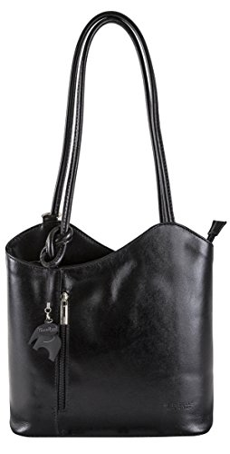 -. Brand : Big Handbag Shop -. Color : Black - Plain -. Department : Womens -. EAN : 5055536582327 -. Feature : A unique top zip opening shoulder handbag with twin strap which can be arranged to convert bag into a backpack / Supplied with our own Big Handbag Shop Branded Dust Bag and a Cute Elephant Charm / Vertical zip pockets at front and back of the bag and silver tone metalware / H x W x D: 28 x 28 x 8 cm (11 x 11 x 3 inch). Weight: 525 grams (1.15 lb, 18.51 oz), Shoulder Strap Drop: 30 cm (12 inch) / Fully fabric lining inside with centre zip pocket dividing the bag in two parts with a zip pocket on back wall of the bag and two open pouch type pocket on the front wall of the bag -. ProductGroup : Shoes -. ProductTypeName : HANDBAG -. Size : One -. Title : Womens Leather Hand Made Shoulder or BackPack Handbag - Made in Italy with a Branded Protective Storage Bag and Charm (F220_Black_Plain)