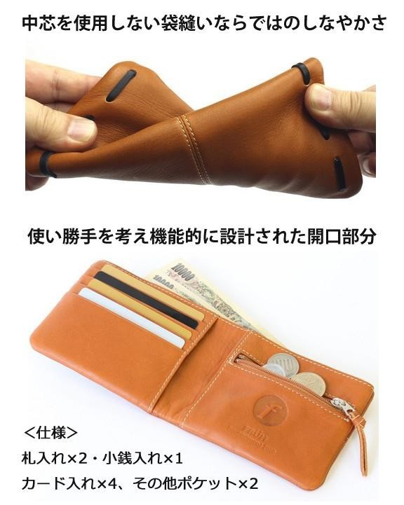 | 仕様 | 札入れ×2 小銭入れ×1 カード入れ×4 その他ポケット×2 |