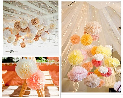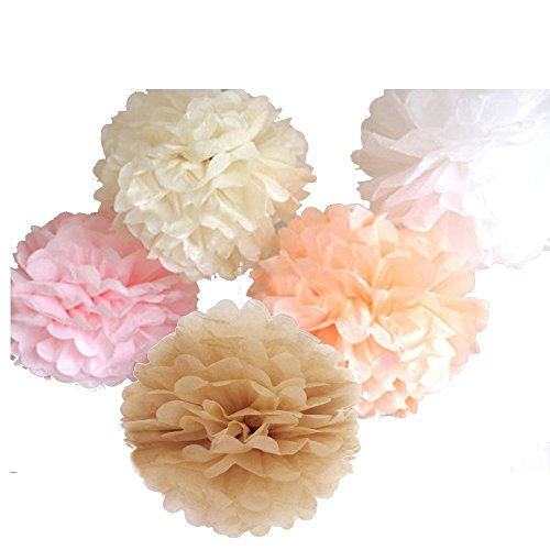 15 Piece Mixed 10'' 12'' 14'' Tissue Paper Pom Poms Flower Wedding Party Baby Girl Room Nursery Decoration