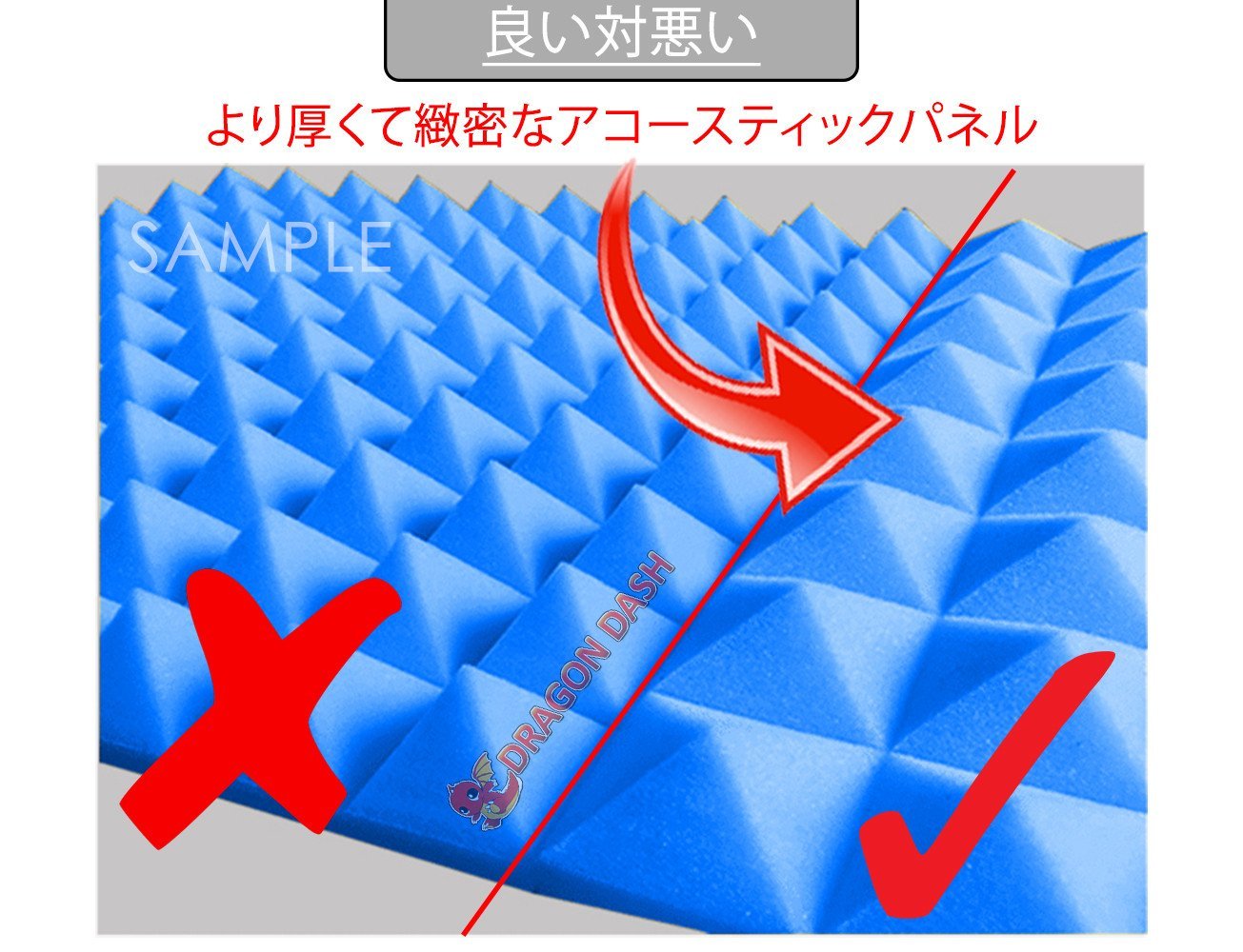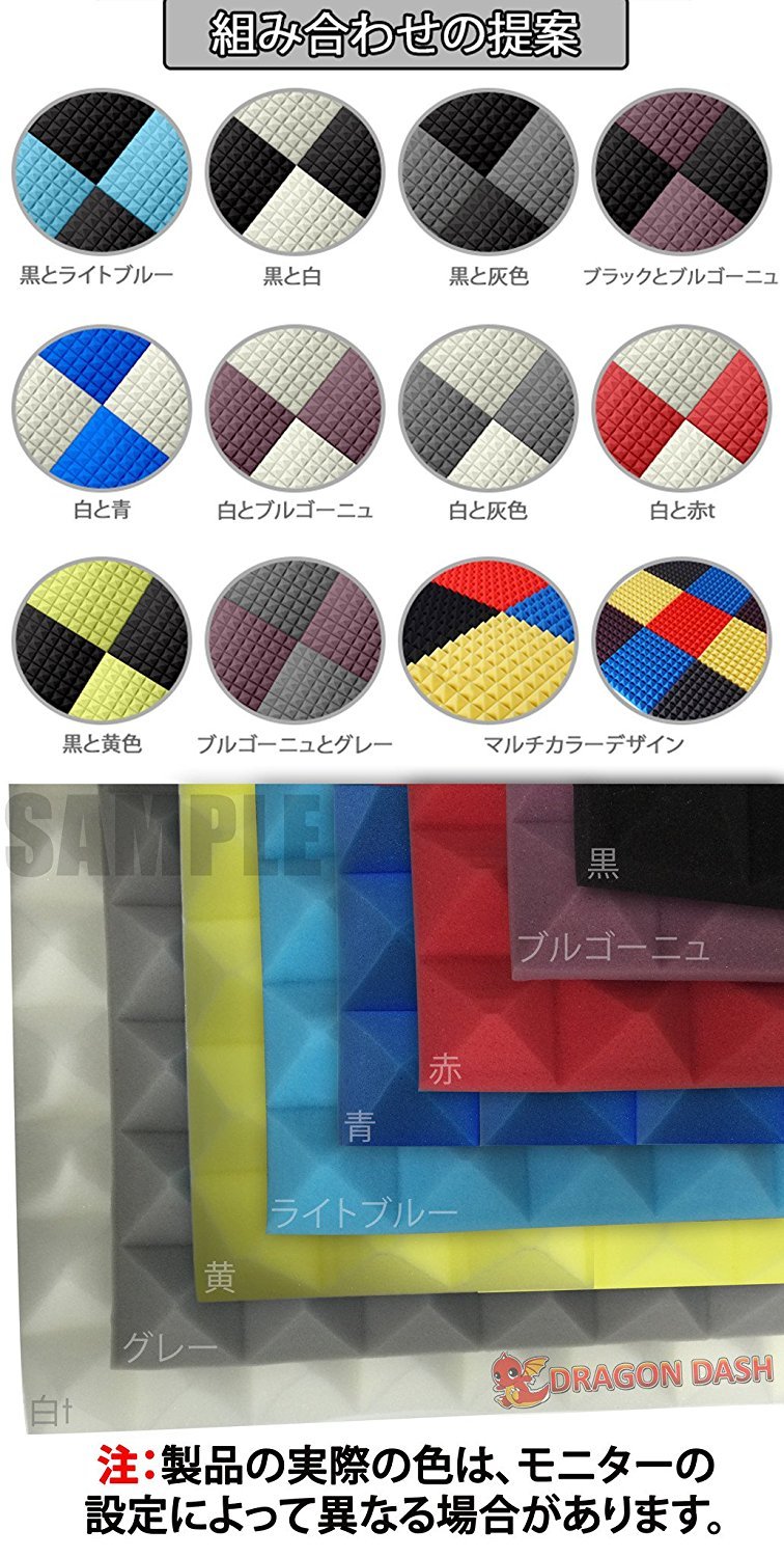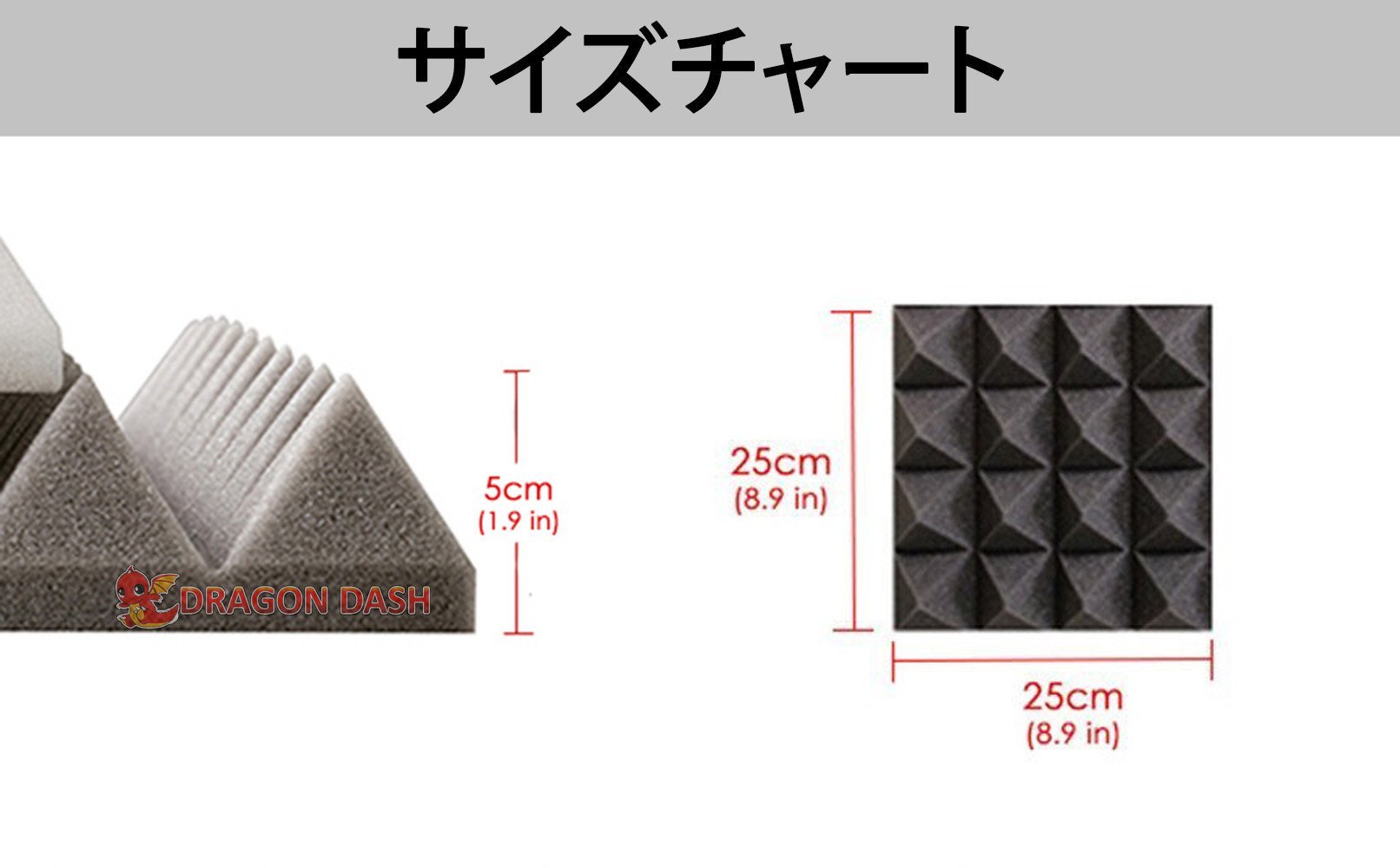 Size and dimensions: 250 x 250 x 50 mm (9.8 x 9.8 x 1.9 mm) pyramid acoustic tile foam