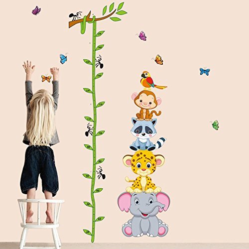 LiveGallery Cartton Tree Branches & Vines Height Chart Measurement Wall Decal Animals Elephant Monkey Growth Charts Wall Stickers Removable DIY...