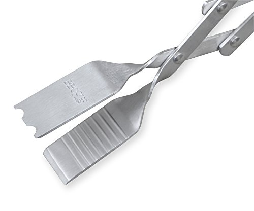 3 IN 1 TOOL: Grabs - Flips - Cleans - Best replacement for a 3-piece barbecue tool set. GRABS more precisely that a regular set of tongs. FLIPS more efficiently than a spatula. Even CLEANS your grill! One spatula has 2 grooves that can be used as a grill scraper to replace your dirty, worn out, bristle falling, grill brush.