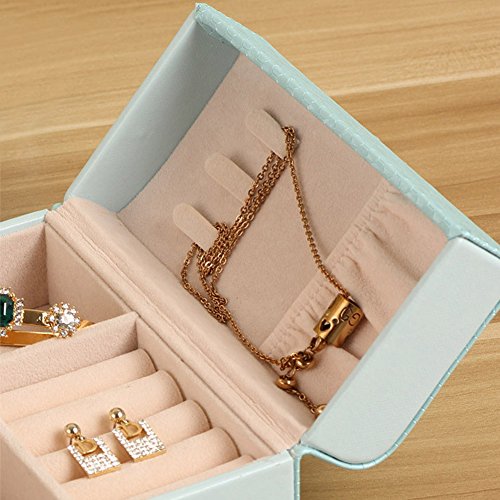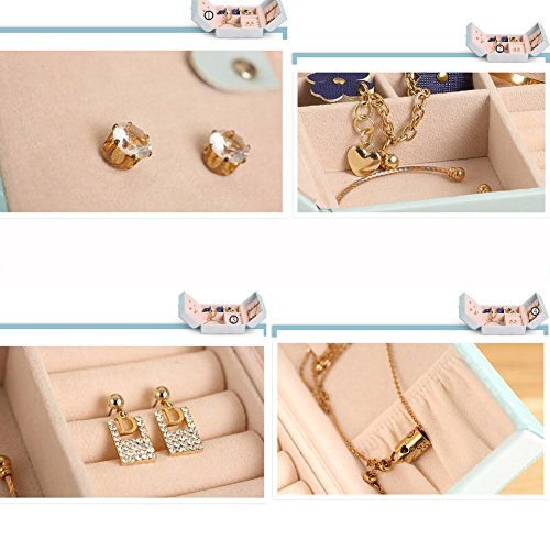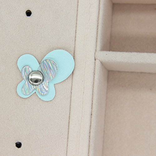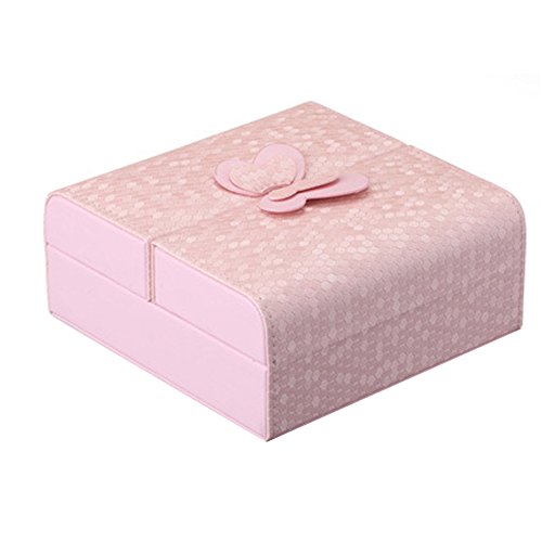 -. Feature : Dimensions: 15*15*6.5cm(5.9*5.9*2.5 in), for other parts size, please see picture details. Exquisite small size to be put into lage so jewelry stop tangling in a bag. Great for your journey. (Please Note that Jewelry and Accesseries are NOT INCLUDED!) / MATERIAL - Made of medium density fiberboard and covered with PU leather, soft beige velvet lining, attractive in appearance and durable in quality, protect your jewelry from dust and scratches. / ORGANIZE YOUR JEWELRY - Left side is concealed design for storing 8 ear studs. Right side has 3 hooks for necklaces or long earrings, 2.5X2 in pocket can hold hairpins suits or hair accessories. In-between position has 4 smaller cells, 1 bigger lattice, 1 middle grid and 5 fine wavy sponges. Which can contain at least 8 rings, 1 big bracelet, cufflink or watch, many brooches and other jewelry collections set. / FASHION DESIGN - It features a double open door with bowknot butterfly style. Portable style and multi function with invisibility magnet on-off. Lightweight in small shape but LARGE capacity for storing jewelry accessories especially when traveling or on business trip. / GIFT CHOICE - Best for holding small daily wear jewelry by the bedside before sleep. Keep all your beloved jewelry well organized with this jewelry box. Great Gift for your mother, girlfriend , wife, daughter, colleague, friend or birthday anniversary wedding christmas graduation mothers-day valentines-day occasions