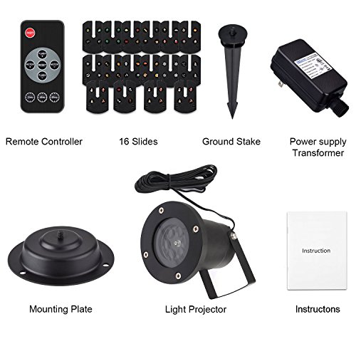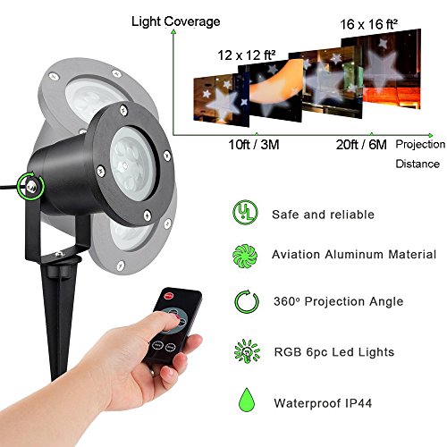 Projector Light is Upgraded Version - Built-in Intelligent IC and includes remote control. Many function you can control: Timer & Speed Control Function. Amazing Illuminations - Plug in, turn on, and watch your garden or house be instantly saturated in gorgeous multicolor lights. Perfect for creating a festival atmosphere. Just set up this light and pattern projector in your yard.