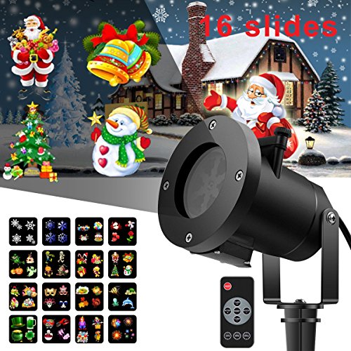 16 HOLIDAY SLIDES - projector lights is improved version, it has bright led and 16 holiday pattern led moving landscape spotlights, For Christmas, Halloween, Thanksgiving, St. Patrick's Day, Easter Day, Valentine's Day, Carnival, Birthday, Marine animals and Children's playground series
