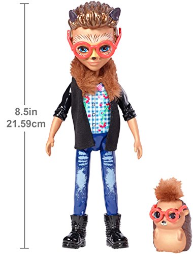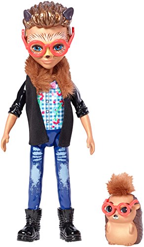 Let Hixby Hedgehog doll and his hedgehog friend Pointer figure enchant you. The Enchantimals dolls are lovable characters who share a special bond with their animal friends -- they're always together, and they look alike, too! The six-inch doll comes with Pointer hedgehog friend -- so cute with orange eyeglasses and furry hair. Hixby Hedgehog doll wears a cool outfit: a checked shirt is paired with trendy jeans, a jacket has leather-inspired sleeves and furry trim and black boots have lace details. He wears an orange pair of eyeglasses and has hedgehog facial features -- hedgehog ears even poke from his spiky molded hair. Kids will love recreating the special bond these friends share and celebrating a world where Caring Is Our Everything. Collect them all to build out a world of Enchantimals and tell enchanting stories of your own (each sold separately, subject to availability). Includes Enchantimals Hixby Hedgehog doll wearing fashion and accessories and Pointer hedgehog friend. Colors and decorations may vary.Feature