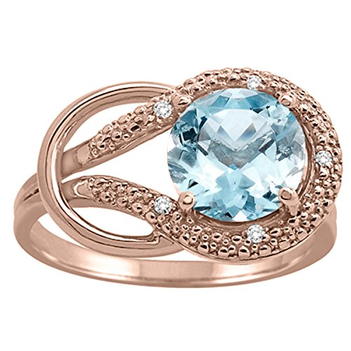 -. Title : Aquamarine and Diamond Love Knot Ring in 10K Rose Gold