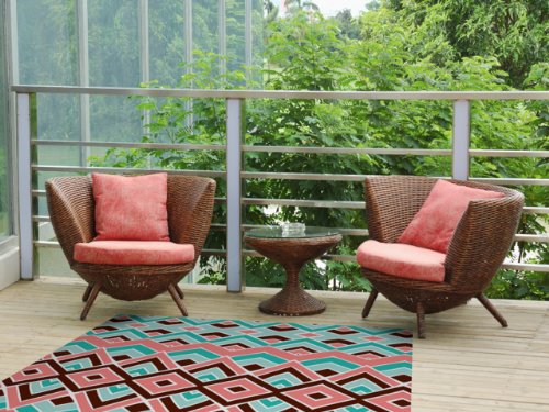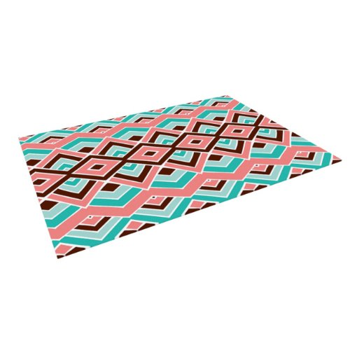 Kess InHouse Pom Graphic Design "Eclectic" Peach Teal Indoor/Outdoor Floor Mat, 4-Feet by 5-Feet