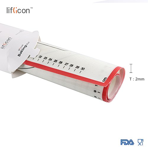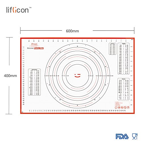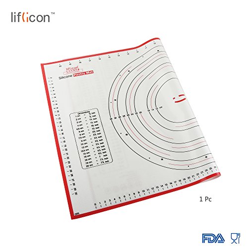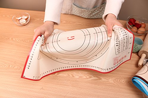 Liflicon Non-slip Silicone Pastry & Dumpling Mat with Measurements, Counter Mat, Oven Liner,Fondant/Pie Crust Mat-Red