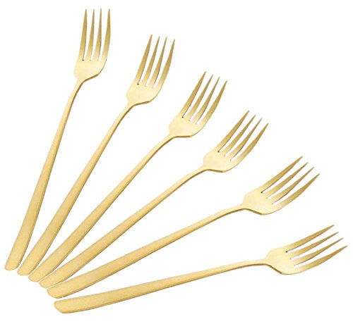 QHZHANG 6 Pack 410 Stainless Steel Dinner Forks Set 8.07" X 0.9" (A-Gold)