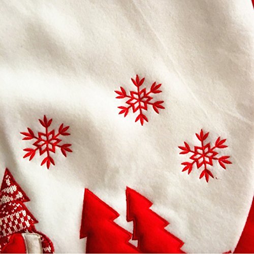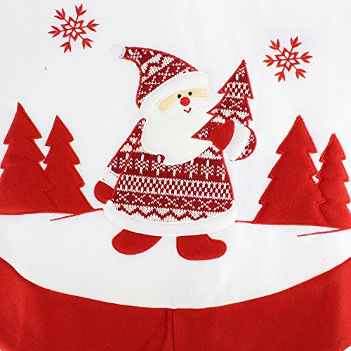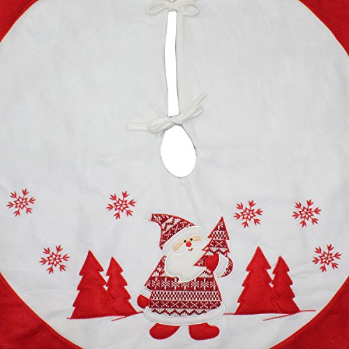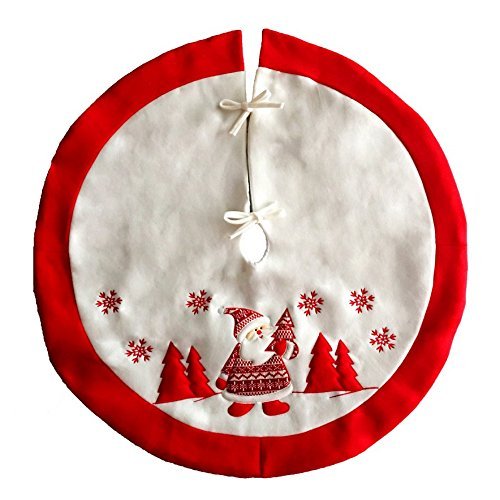 36" Yuboo Christmas Tree Skirts White Velveteen Tree Ornaments, with Patterns of Embroidered Santa Claus ,Snowflake and Trees for Holiday Decoration (white)