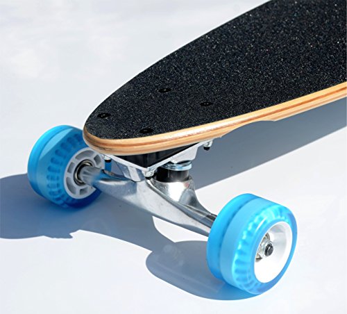-. Feature : Classic Pintail shape / Awesome Pintail longboard great for cruising / Components:8.5 inches Aluminum Trucks; Abec 5 Bearings ; Deck - Maple Laminate Deck; 65mm / 78A Urethane Wheels; Full coverage griptape top; / Longboard with classic deck shape helps you avoid wheel bite / Ideal for beginner longboard riders / 8.5-inch aluminum trucks, ABEC 5 bearings, 78A urethane wheels / Maple laminate deck, full coverage griptape top, colorful design underneath / Measures 39 x 9.4 x 6 (LxWxH)