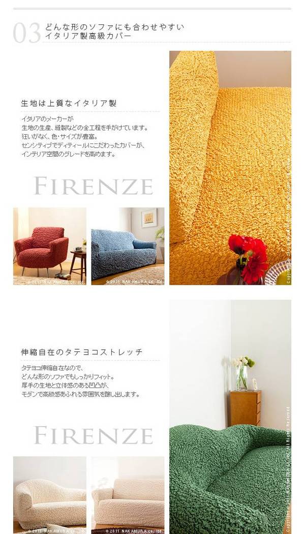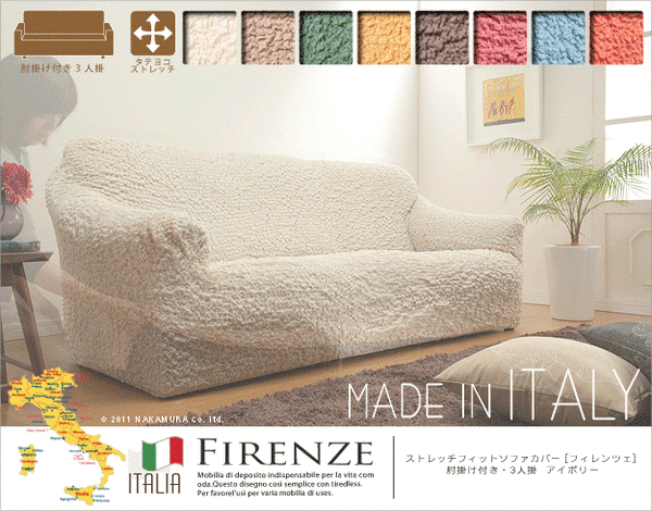 本商品はお取り寄せ商品のため、稀にご注文入れ違い等により欠品・遅延となる場合がございます。誠に恐れ入りますが、何卒ご了承ください。 また、以下の場合には追加送料がかかる場合がございます。  ・大型商品の複数購入時 ・同梱区分が異なる商品の複数購入時  【出荷目安】:3 - 6営業日 ※土日・祝除く 【同梱区分】:TS 1832 【梱包サイズ】:大型商品 【代引き決済】:不可  配送伝票の依頼主は出荷元(メーカーもしくは仕入元)名となる場合がございますので、お受け取りの際はご注意ください。   【型番】61000007  イタリア製ストレッチフィットソファカバー Firenze〔フィレンツェ〕アーム付き 3人掛け用 ソファーカバー ストレッチ 肘付き 3人掛け ワイン   ≪アーム付・3人掛け用≫ 商品について:どんな形にも合わせやすい!かぶせたら余った部分をソファのすき間に押し込むだけ♪タテヨコ伸縮自在のストレッチ素材。のびがよく柔らかで凹凸のある素材感が特徴。生地は上質なイタリア製。洗濯OK! 適合ソファサイズ:幅165~220cm・高さ85cmまで カラー:アイボリー・ブラウン・グリーン・イエロー・チョコレートブラウン・ワイン・ブルー・オレンジ 材質:綿55%・ポリエステル25%・アクリル15%・レーヨン5%(61000007)  【特記事項】 画像のカラー・サイズとは異なる場合がございます。商品名のカラー・サイズをご確認下さい。  【ご注意事項】 本商品は、北海道・沖縄・離島への配送はいたしかねます。あらかじめご了承ください。