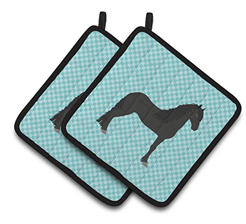 Caroline's Treasures BB8089PTHD Friesian Horse Blue Check Decorated Pot Holder, 7.5" x 7.5", Multicolor