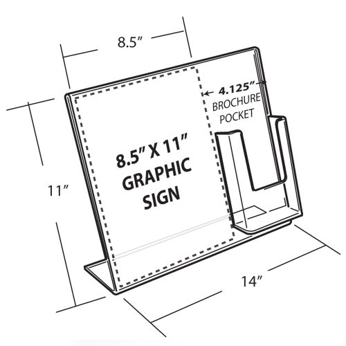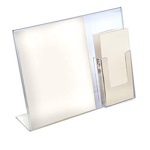 Azar Displays 252056-2pack L-Shaped Slated Acrylic Sign Holder with Attached Brochure Holder 14" Width by 11" Height (Pack of 2)