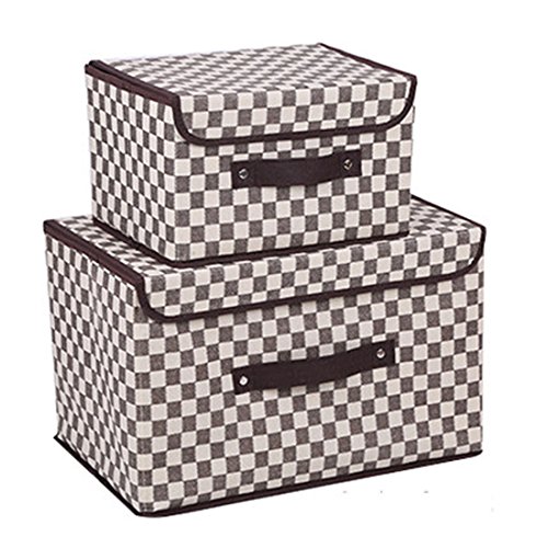 Foldable Storage Containers With Lids, Storage Cube Basket Set of 2, Large Storage Canbinet (Checks, Grey)