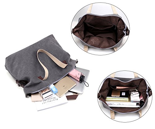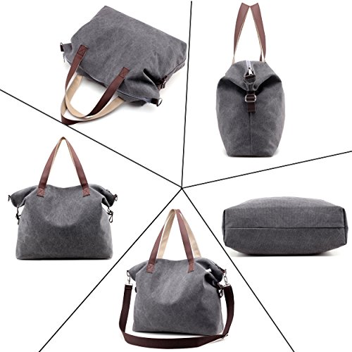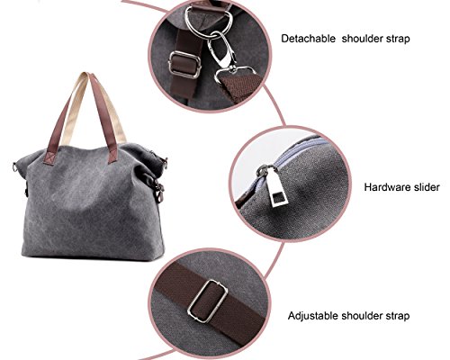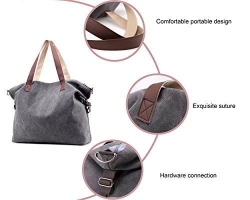 - Material -- Canvas & Nylon,Quality durable canvas material,Soft top handles are very convenient for over shoulder carrying,cotton strap, Metal zipper. Smooth nylon fabric lining.