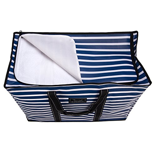 Handle drop measures 10-inches long; Shoulder strap drop measures 3-inches long; Navy, White