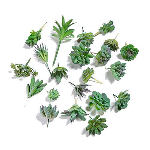 Khalee Artificial Succulent, Fake Mixed Succulents Man-made Plants (12 PCS, Flocked Green)