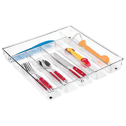 mDesign Kitchen Drawer Organizer for Silverware, Spatulas, Gadgets - Clear