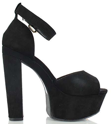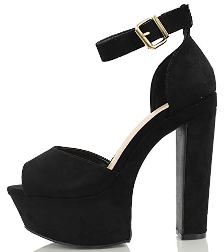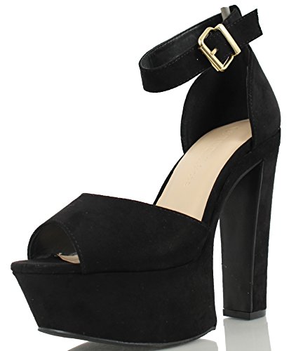 Product DescriptionThis chic heel features wide strap, adjustable ankle strap, bold buckle, and platform 1 3/4" and 5 1/2".0