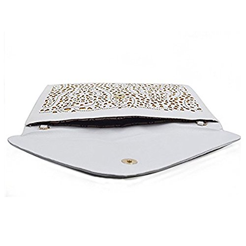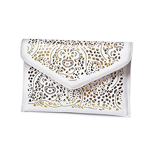This perforated clutch has a beautiful background to accentuate the cut out pattern.