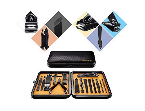 AMarkUp Manicure Pedicure Set Tools Nail Clippers for Men & Women Home Travel Grooming Kit (15Pcs/set,Yellow)