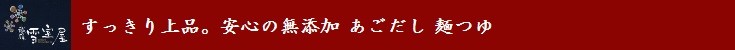 本醸造醤油と日本海産あごだし(とび魚)をベースにした、すっきり上品な麺つゆです。 合成保存料ならびに化学調味料は一切使用しておりませんので、安心してお召し上がりいただけます。 |