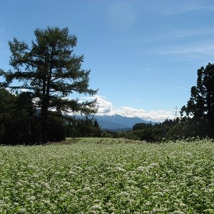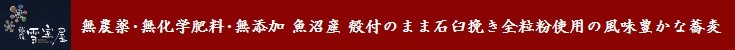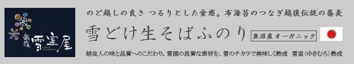 新潟県魚沼地区の自社農園で無農薬・自社栽培でいちから育て、清らかな水と雪どけ水が育んだ玄そばを天然の冷蔵庫「雪室」に貯蔵し、石臼挽きで挽きぐるみ製粉。 そば処 小千谷の匠の麺職人が手作業にて風味豊かに無添加で製麺しました種を殻付きのまま石臼挽きする全粒粉を使用。 風味豊かな本格生そば。そばは魚沼市 道光高原・小千谷市四ッ子山にて無農薬栽培ですので安心してお召し上がりいただけます。 | ![]() | ![]() |