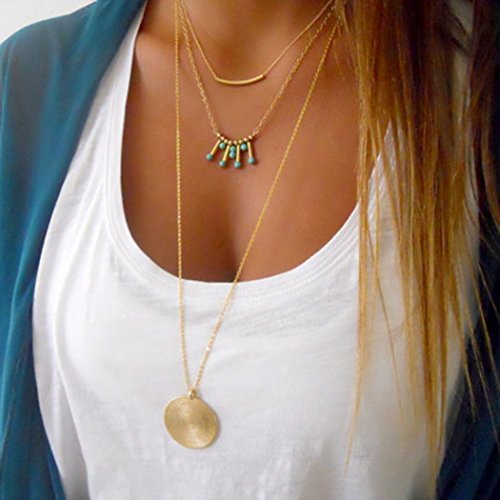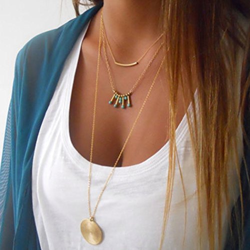 LittleB vintage Multilayer Alloy sequins turquoise necklace for women and girls.