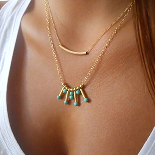 - Silver color with the Multilayer Alloy sequins turquoise necklace.