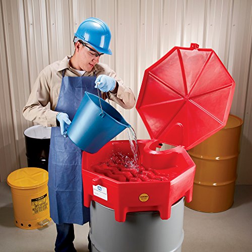 New Pig DRM672 LDPE Drum Funnel with Hinged Lid, 29" Diameter x 11" Height, Red, For 55 Gallon Tight-Head Steel and Poly Drums