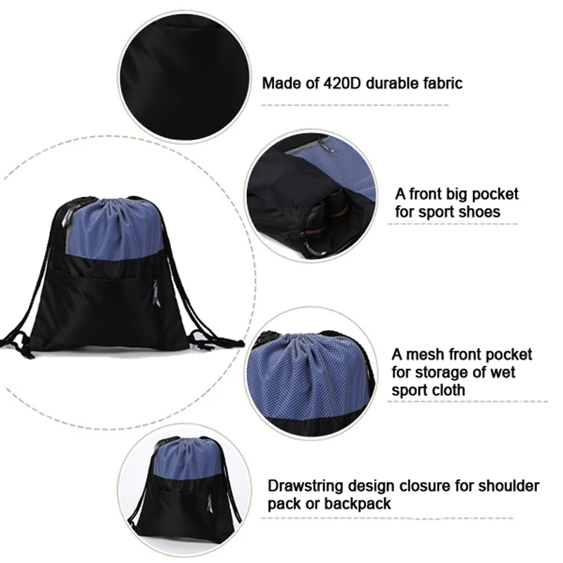 Usage:swim bag, bookbag, shoe bag, gym bag, sport bag