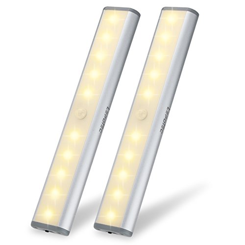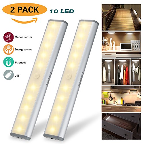 Motion Sensor Light Cabinet Lights,USB Rechargeable 10 LED Cabinet Lighting, Magnetic Removable Stick-On Anywhere for Closet/Wardrobe/Drawer/Cupboard, Warm White Light, Silver, 2 Pack