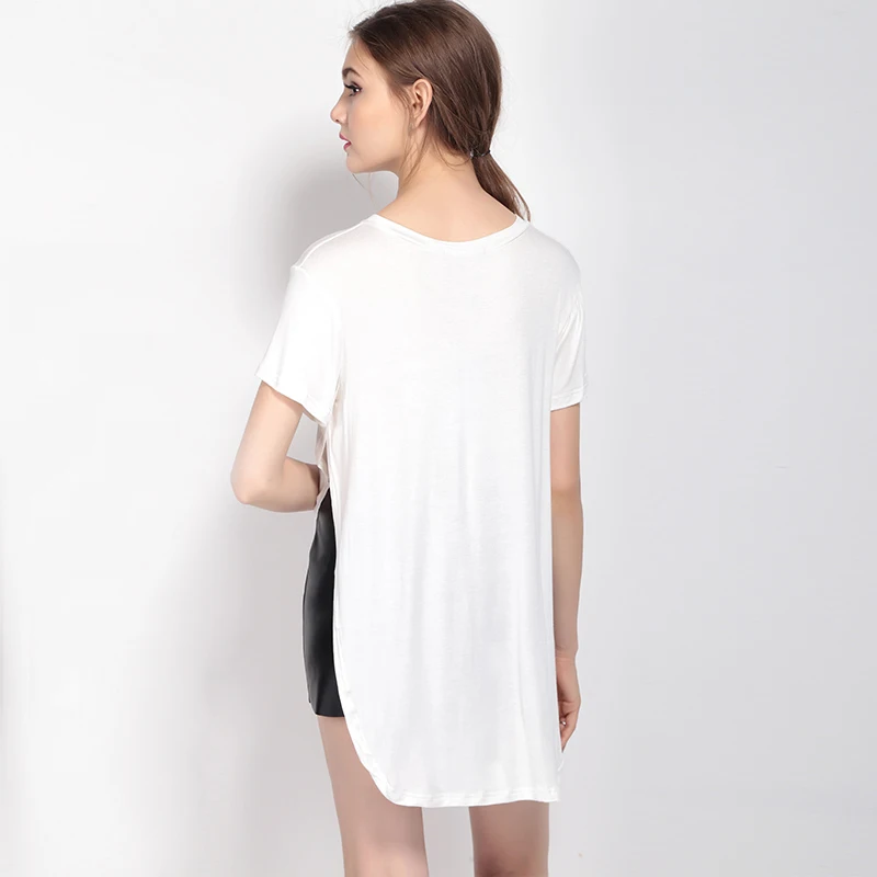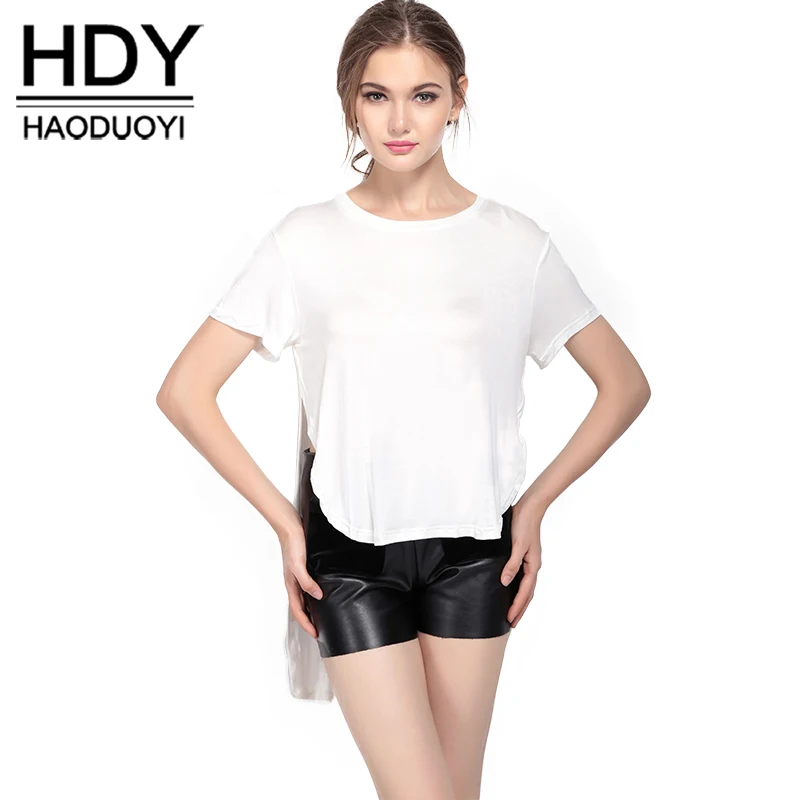 HDY Haoduoyi Split Basic Tops Women Short Sleeve Female Solid White Pullover Tops Brief Style High Low O-neck Casual T-shirt | |||||||||||||||||||||||||||||||||||||||